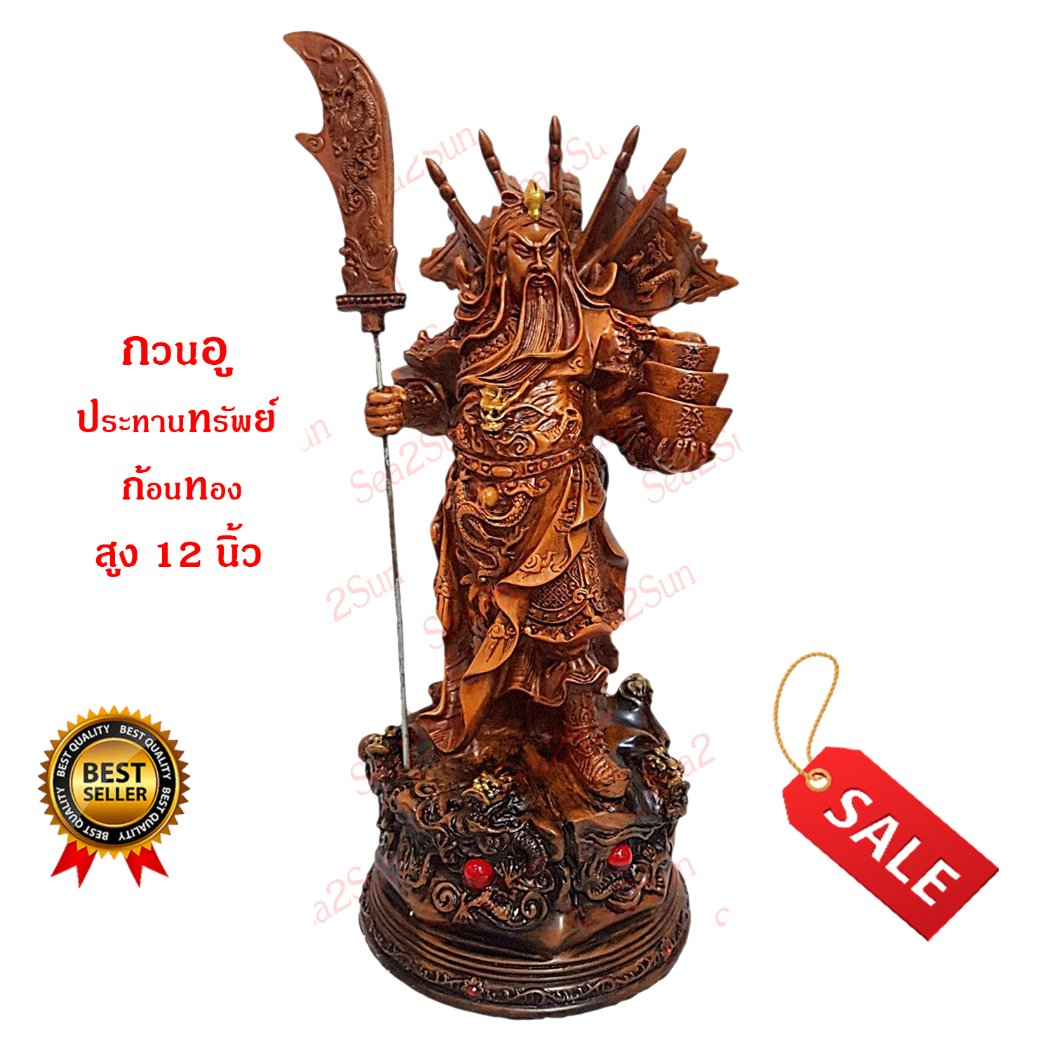 เทพเจ้ากวนอู ปางประทานทรัพย์ 12 นิ้ว ทอง 3 ก้อน