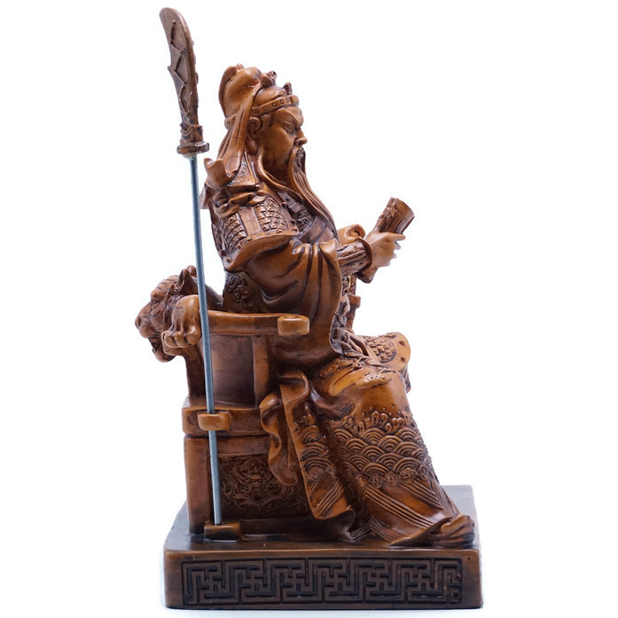 เทพเจ้า กวนอู อ่านตำรา เรซิ่นลายไม้ สูง 8 นิ้ว